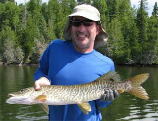 turned for his 2nd trip this year which makes 9 times in the last 8 years, bringing his better half, Nancy for her first ever fishing experience in the Canadian Wilderness. 1st day was a practice fly-casting day for Nancy with Steve catching a few fish. 3rd day was great as they caught 7 Pike & 2 Smallmouth Bass along with losing some while fly-fishing. Steve said he saw an eye opener Smallmouth Bass which was GIANT estimating it to be over 20”. This monster just came in and eyed up Steve’s fly, caused all kinds of commotion, then just slowly swam away. 4th day was fabulous as they caught many Northern Pike & Nancy landed her first two Pike ever. Steve’s main goal was having Nancy catch a Pike on the fly. All were caught fly-fishing of course, as this is the only fishing method Steve & Nancy use. 5th & final day very high winds were not suitable for any type of fishing let alone fly-fishing, so Steve & Nancy stayed back enjoying their beautiful cabin view and atmosphere around it, while catching up on some reading & looking forward to Audrey’s famous Wednesday night ribs. Both thoroughly enjoyed their stay and we look forward to seeing them next year, as they already have reservations for 2012.